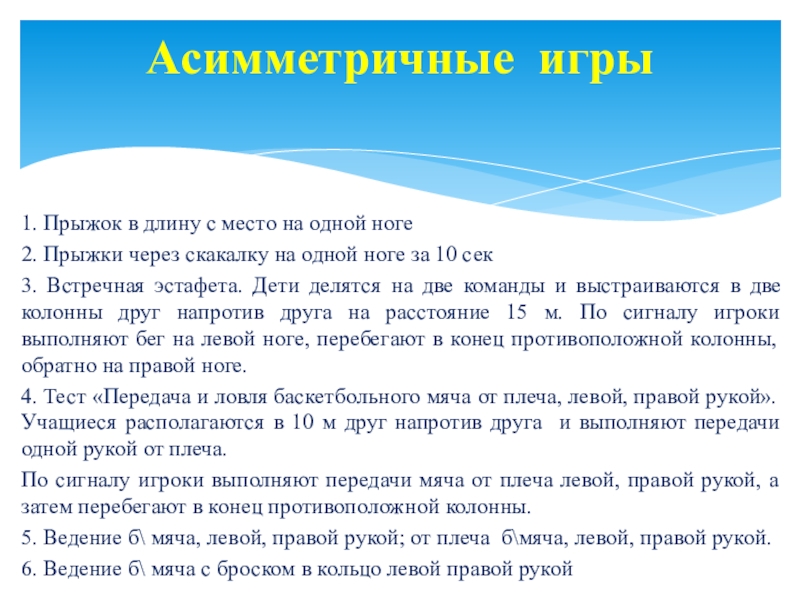 4. Тест «Передача и ловля баскетбольного мяча от плеча, левой, правой рукой». Учащиеся располагаются в 10 м друг напротив друга и выполняют передачи одной рукой от плеча.