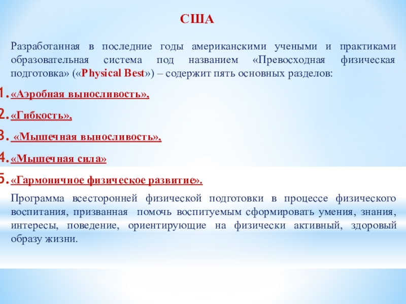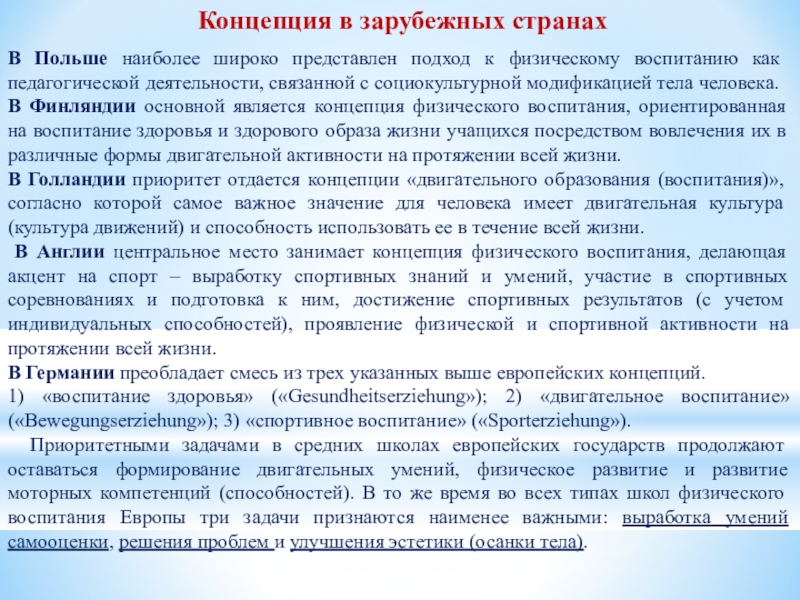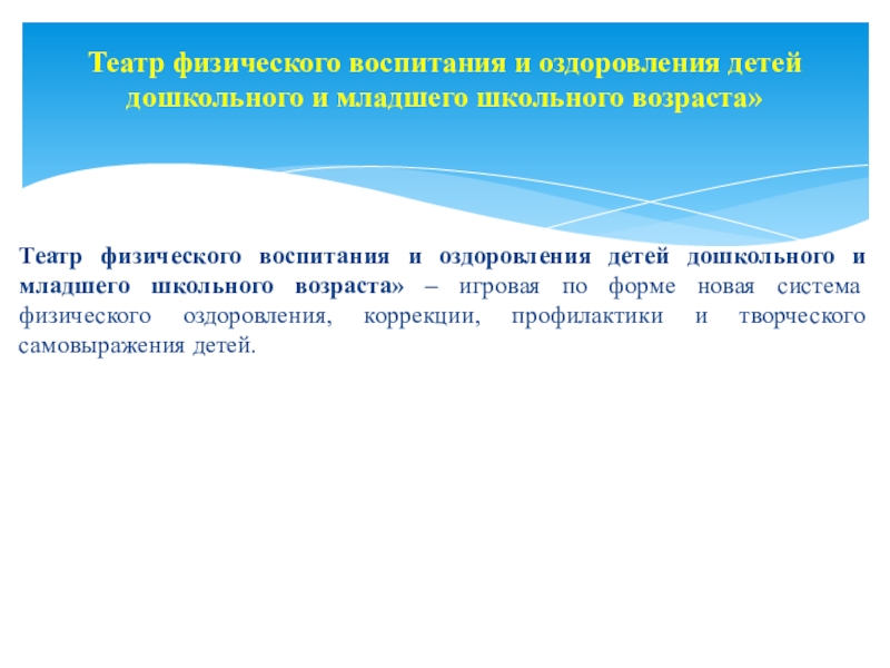 усвоение детьми знаний в области физической культуры. Ориентирует современную систему физического воспитания на развитие познавательных сил и творческого потенциала детей.
