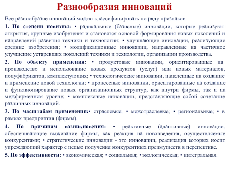 Слайд 5Разнообразия инноваций
