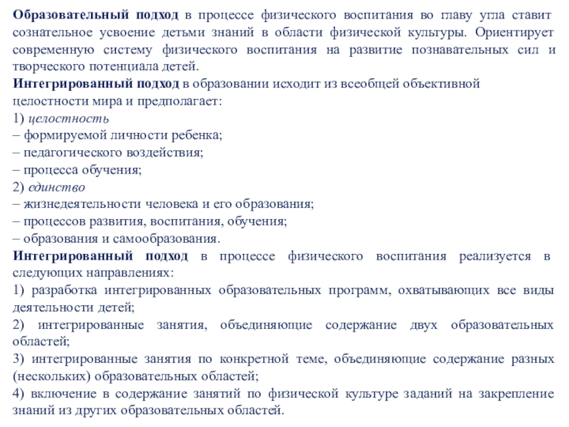 Интегрированный подход в процессе физического воспитания реализуется в следующих направлениях: