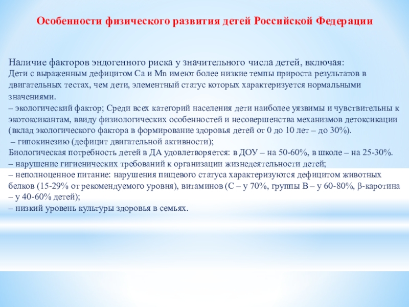 Слайд 8Особенности физического развития детей Российской Федерации