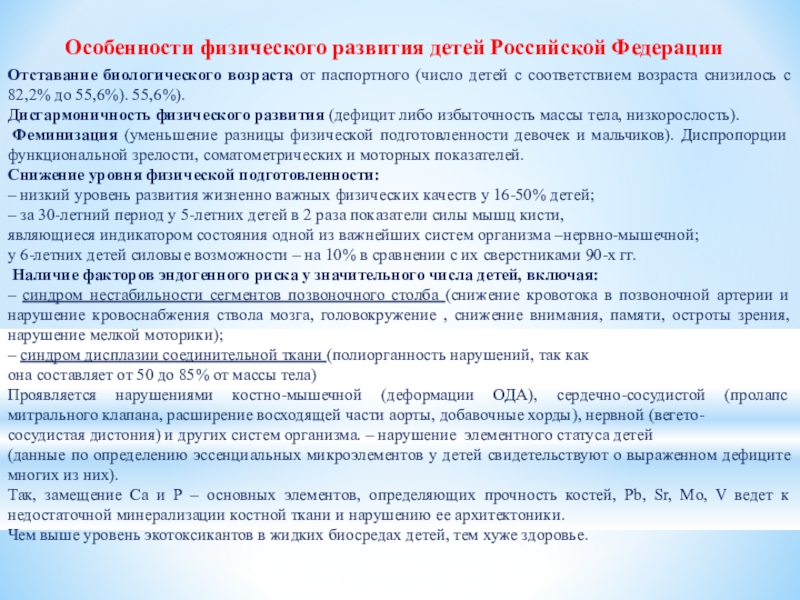 Слайд 7Особенности физического развития детей Российской Федерации