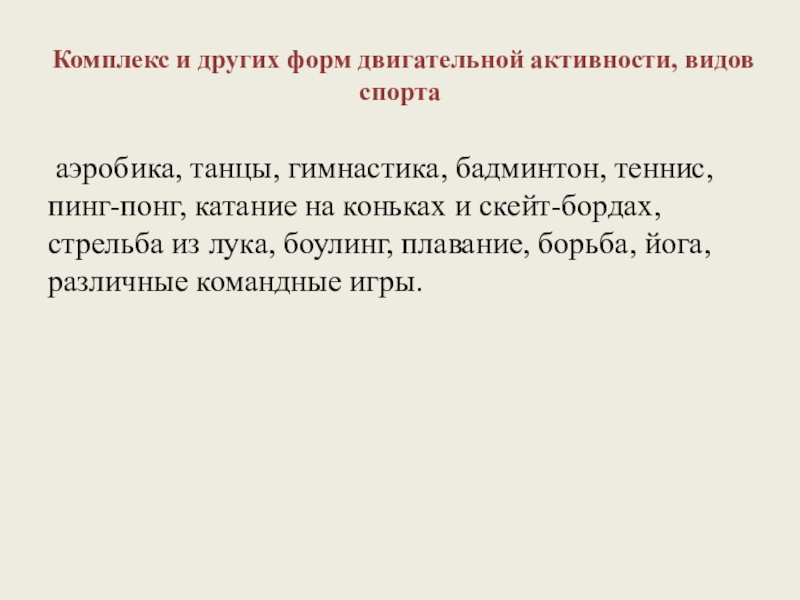 Слайд 24Комплекс и других форм двигательной активности, видов спорта