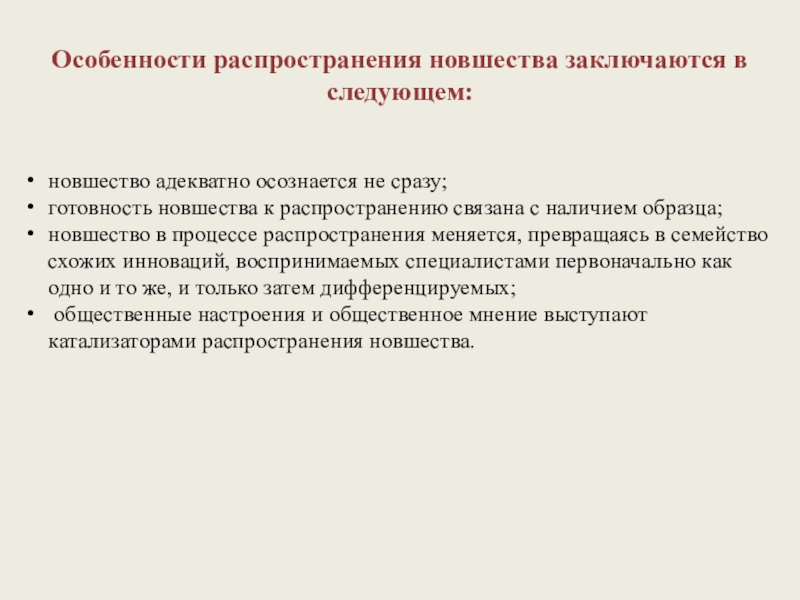 Слайд 4Особенности распространения новшества заключаются в следующем: