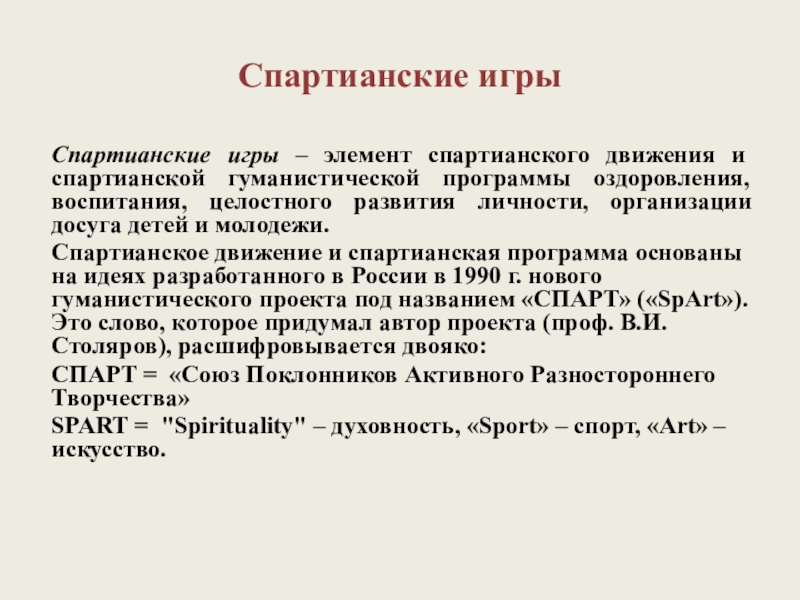Спартианские игры – элемент спартианского движения и спартианской гуманистической программы