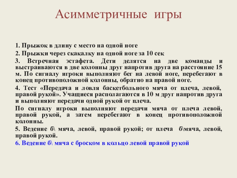 5. Ведение б\ мяча, левой, правой рукой; от плеча б\мяча, левой, правой рукой.