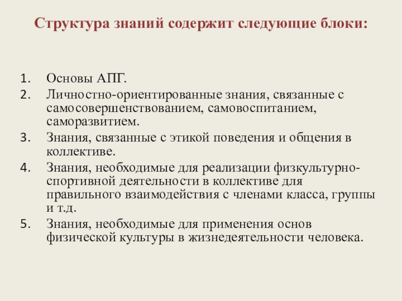 Знания, необходимые для применения основ физической культуры в жизнедеятельности человека.