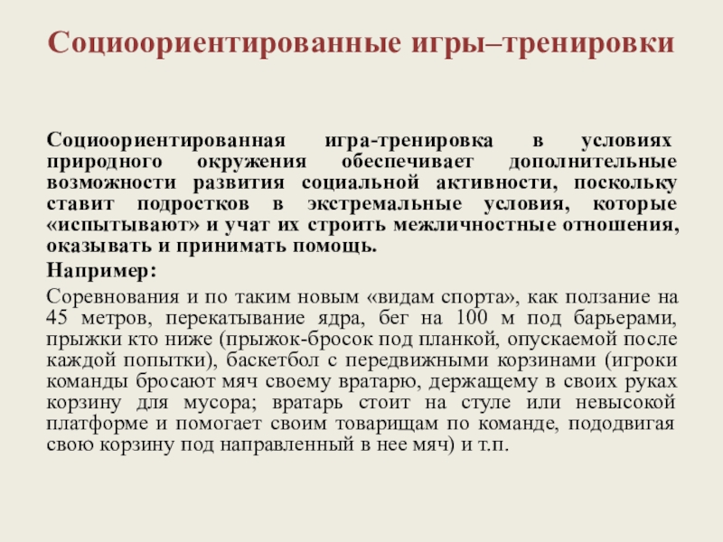 Социоориентированная игра-тренировка в условиях природного окружения обеспечивает дополнительные возможности развития
