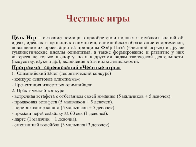 Цель Игр – оказание помощи в приобретении полных и глубоких