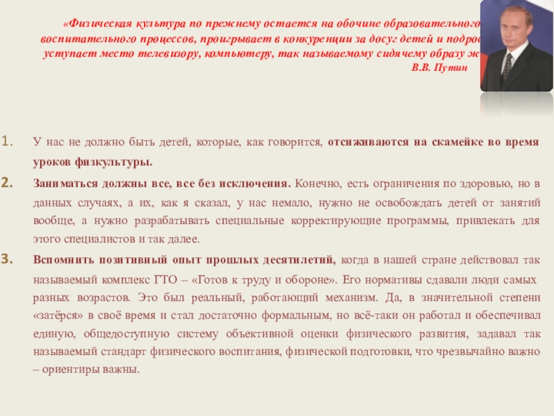 Слайд 2«Физическая культура по прежнему остается на обочине образовательного и воспитательного процессов,