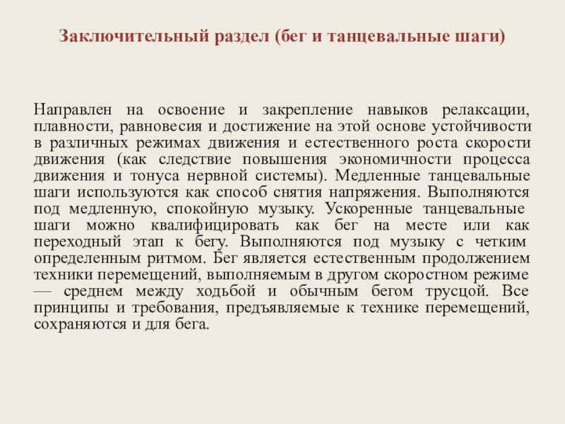 Направлен на дальнейшее освоение плавности, непрерывности движения при