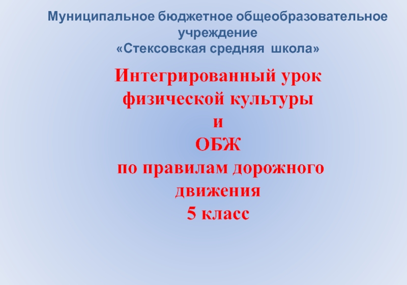 Муниципальное бюджетное общеобразовательное учреждение «Стексовская средняя школа»Интегрированный урок физической культуры и ОБЖ по правилам дорожного движения5 класс