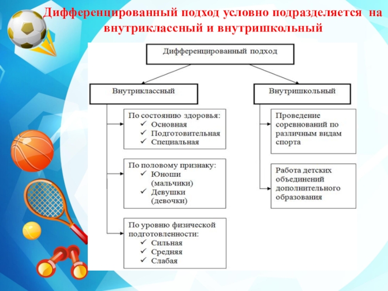 Слайд 8Дифференцированный подход условно подразделяется на внутриклассный и внутришкольный