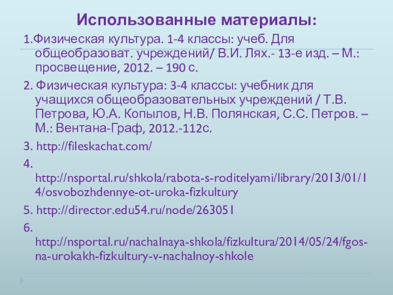 физической культуры в начальной школе в процессе реализации ФГОС.