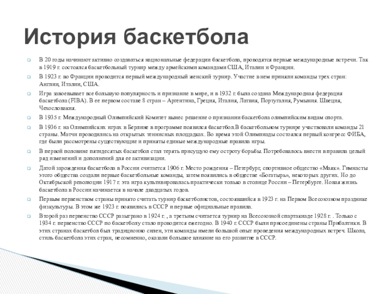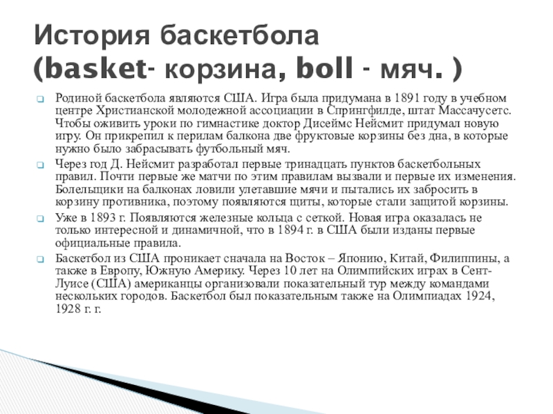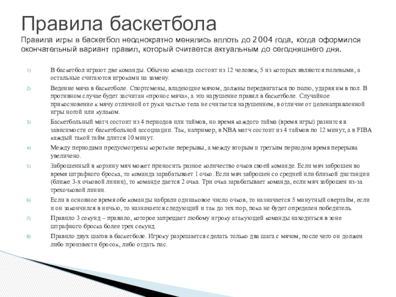 Правила игры в баскетбол неоднократно менялись вплоть до 2004 года, когда оформился окончательный вариант правил, который считается актуальным до сегодняшнего дня.
