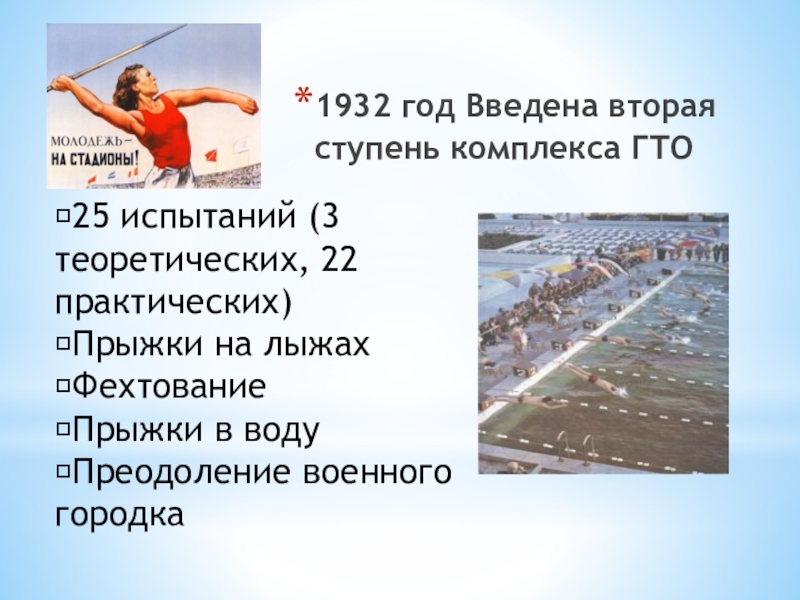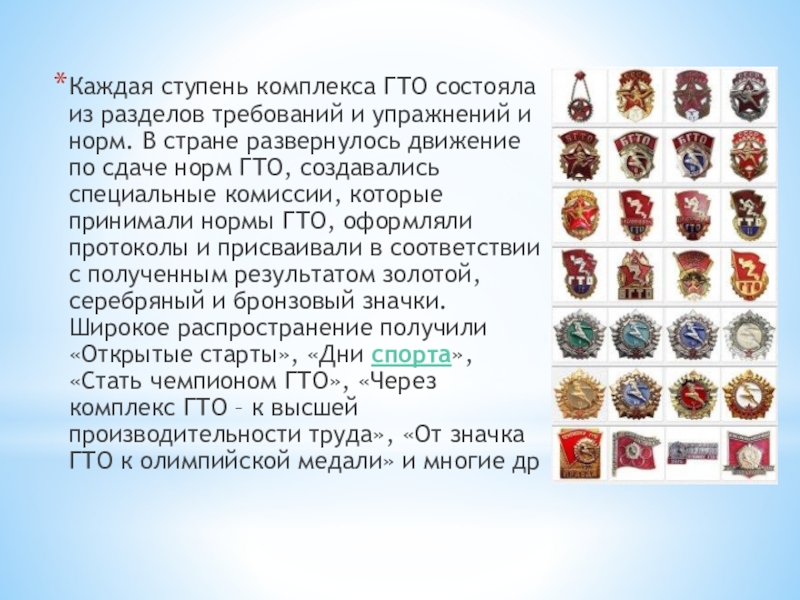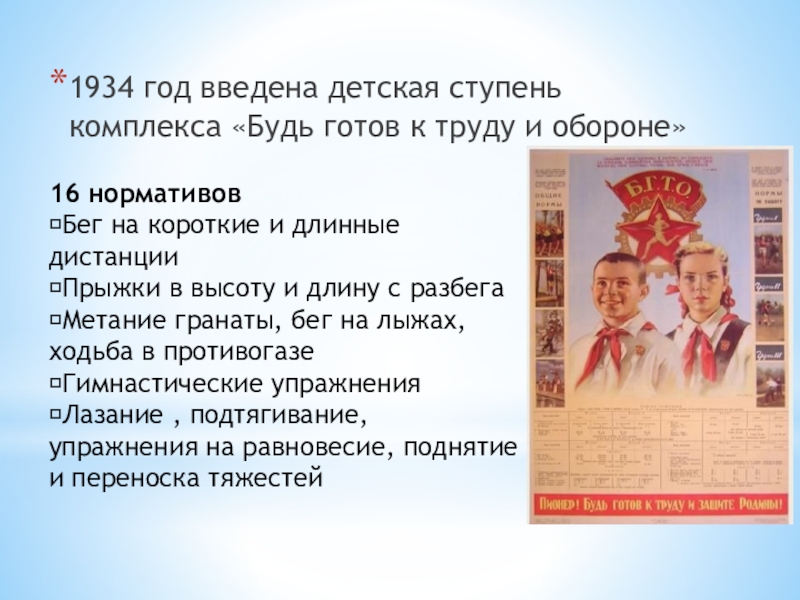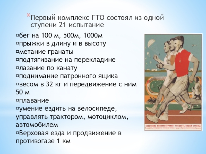 Первый комплекс ГТО состоял из одной ступени 21 испытание