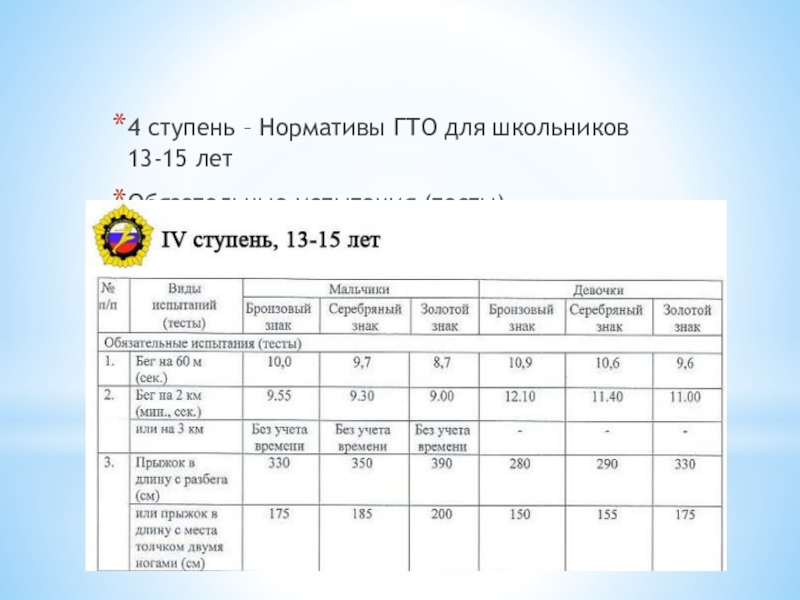 - 1 ступень — «Смелые и ловкие» — 10—11 и 12—13 лет;