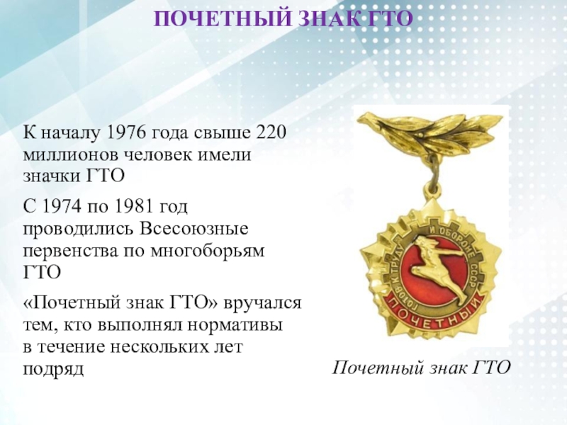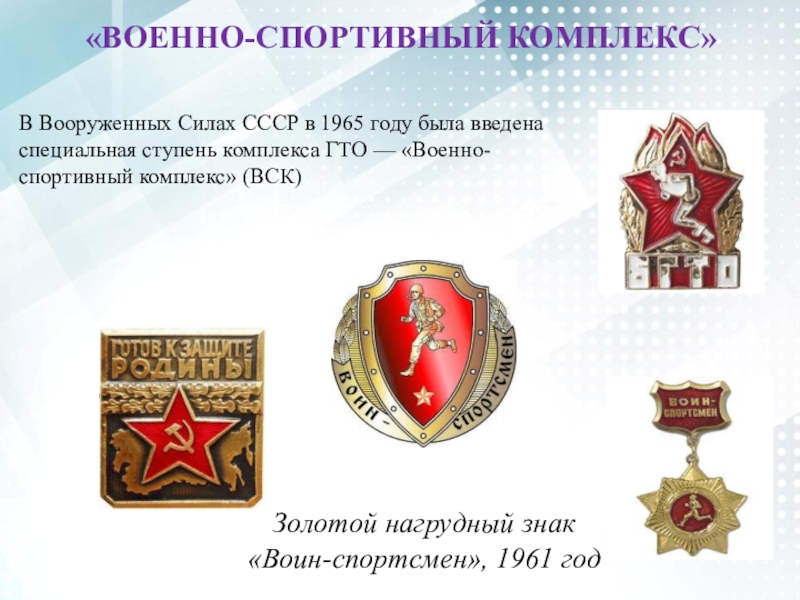 Золотой нагрудный знак «Воин-спортсмен», 1961 год