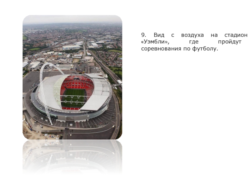 Слайд 129. Вид с воздуха на стадион «Уэмбли», где пройдут соревнования по