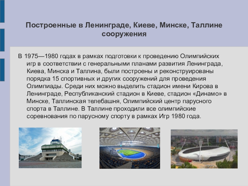 Слайд 8Построенные в Ленинграде, Киеве, Минске, Таллине сооружения