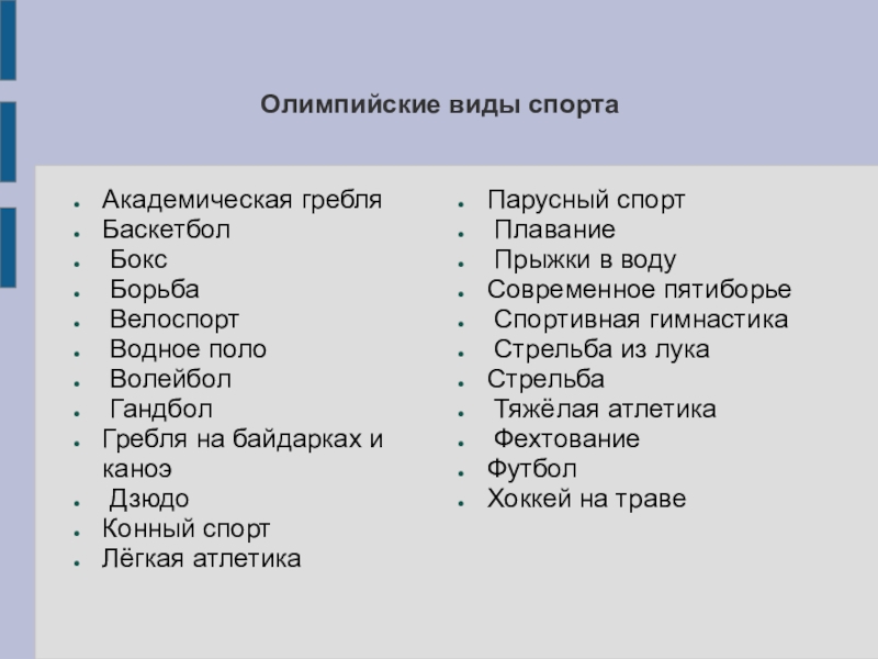 Слайд 5Олимпийские виды спорта