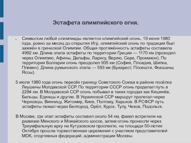 “История олимпиады 1980 г.”