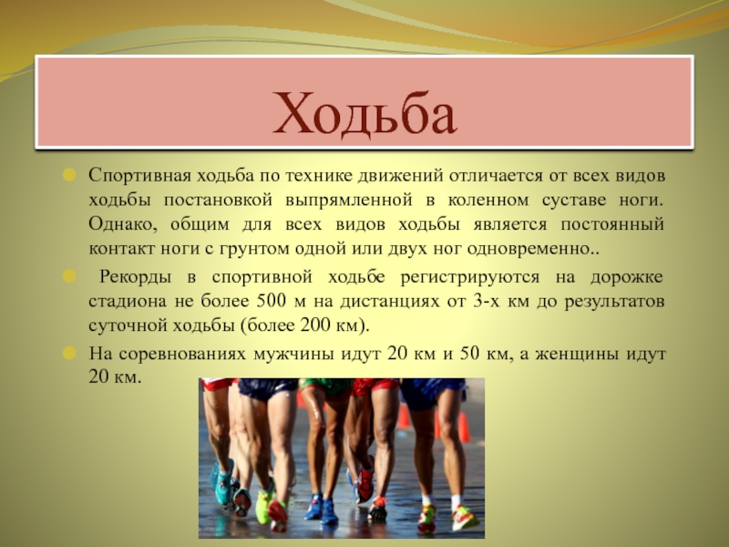 Спортивная ходьба по технике движений отличается от всех видов ходьбы постановкой