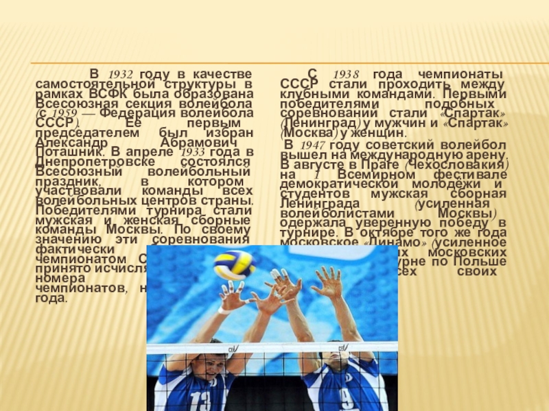 Слайд 3 Отечественный волейбол стал быстро развиваться сначала в