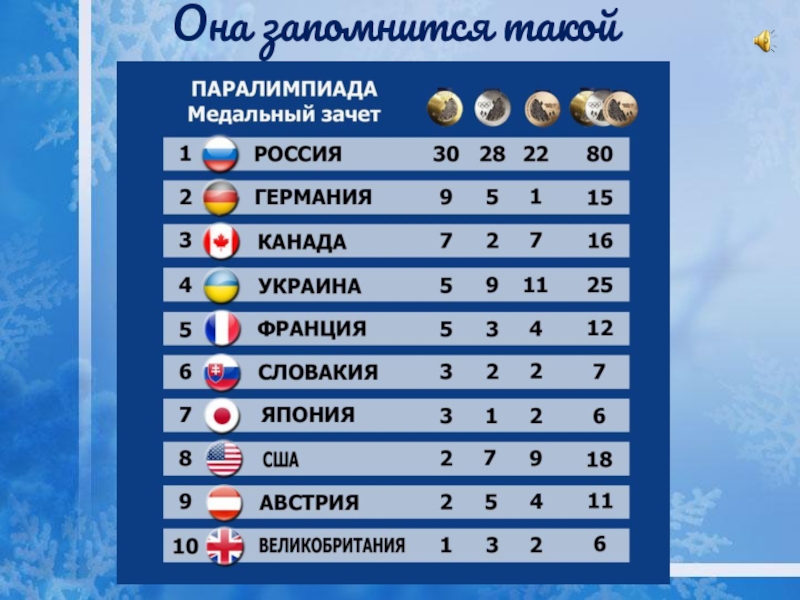 Презентация, доклад на тему Итоги параолимпиады в Сочи - 2014