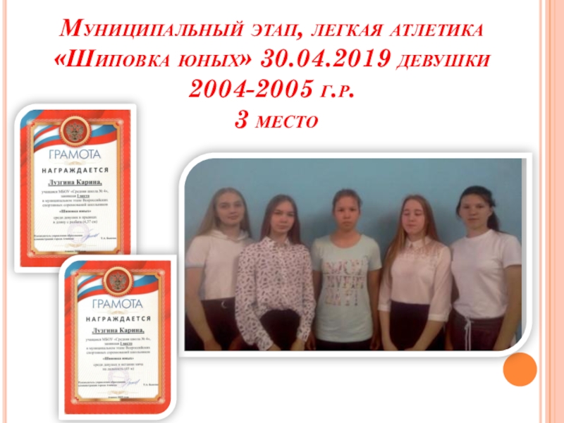 Слайд 47Муниципальный этап, легкая атлетика «Шиповка юных» 30.04.2019 девушки 2004-2005 г.р.