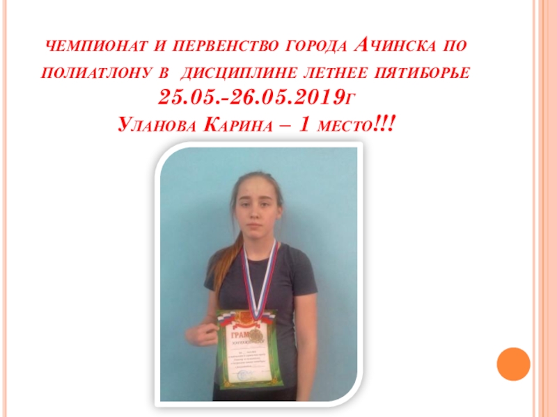 Слайд 52чемпионат и первенство города Ачинска по полиатлону в дисциплине летнее пятиборье
