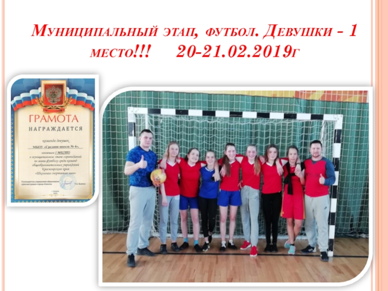 Слайд 34Муниципальный этап, футбол. Девушки - 1 место!!! 20-21.02.2019г