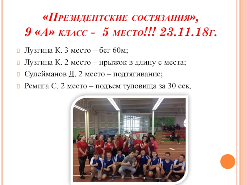 Ремига С. 2 место – подъем туловища за 30 сек.