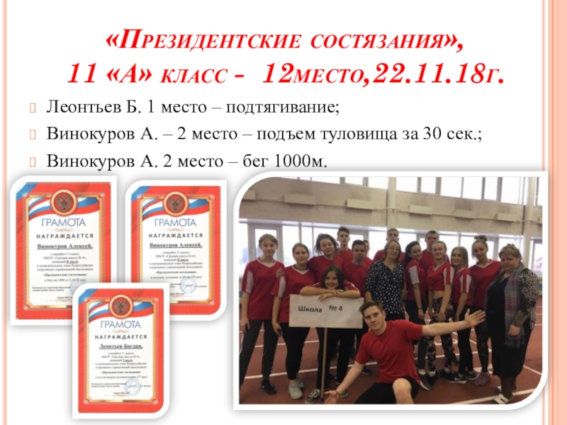 Винокуров А. – 2 место – подъем туловища за 30 сек.;