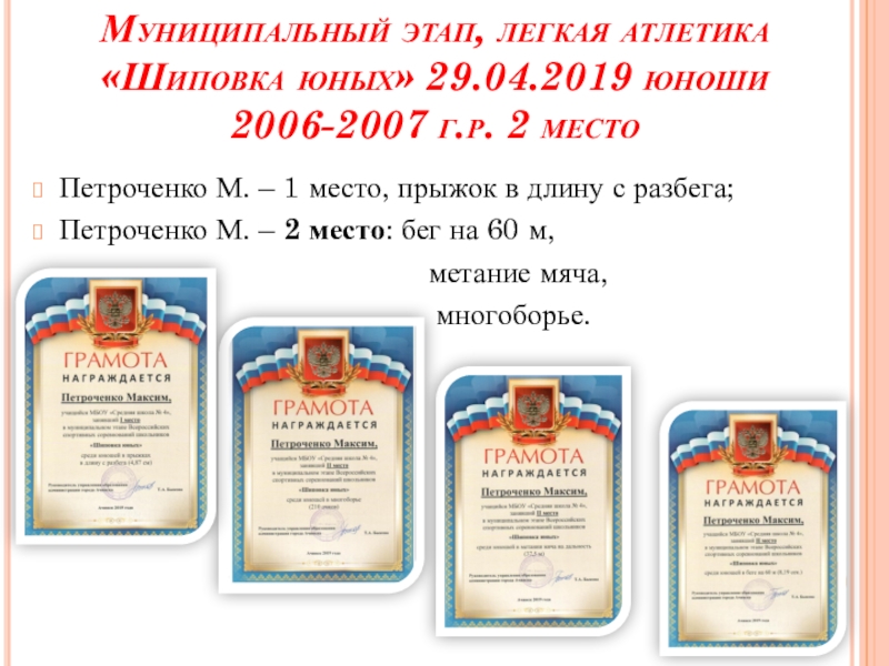 Слайд 46Муниципальный этап, легкая атлетика «Шиповка юных» 29.04.2019 юноши 2006-2007 г.р. 2