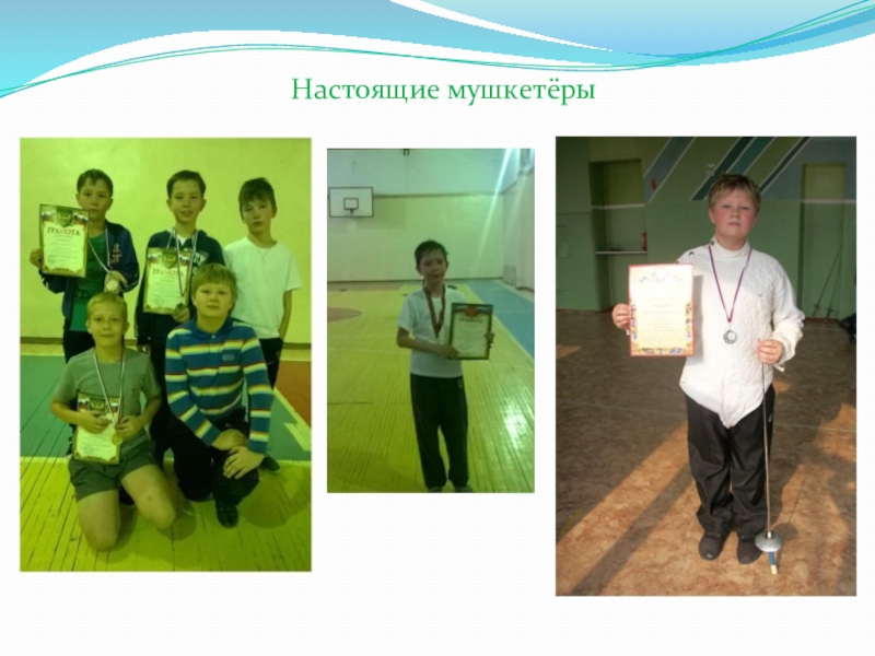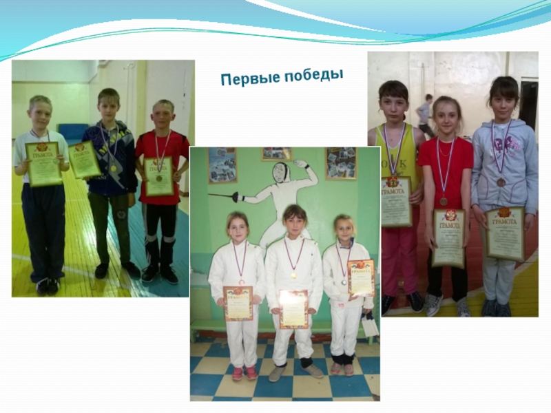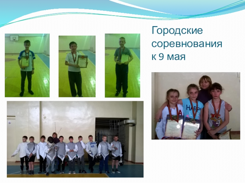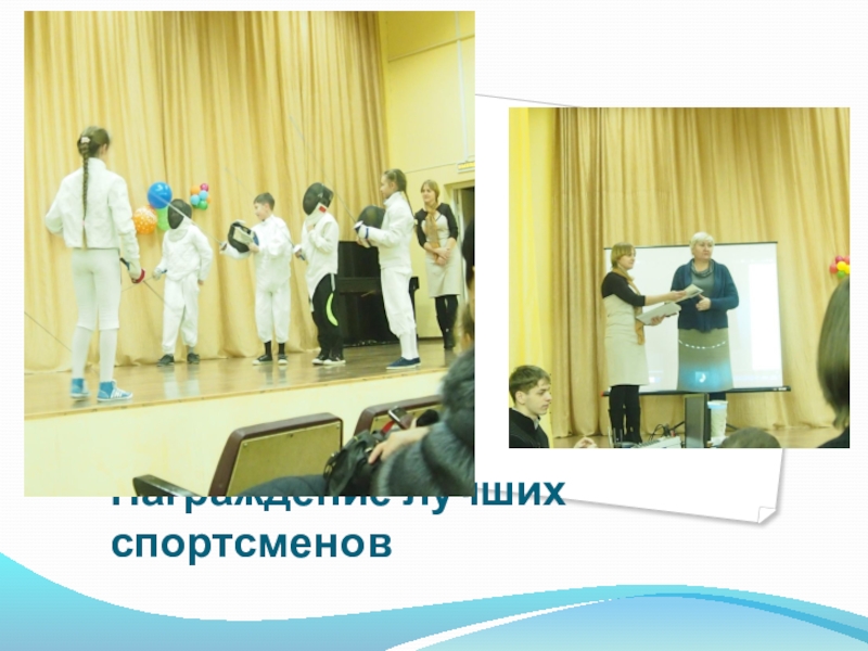 Педагог и заместитель директора по учебной части проводят награждение спортсменов объединения фехтования в различных номинациях (За отличные результаты в соревнованиях, стремление к победе, за преданность спорту, за лучшую технику и т.д.).