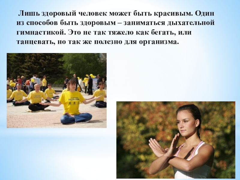 Слайд 7Дыхательная гимнастика оксисайз – еще один популярный вид гимнастики, которая способствует оздоровлению