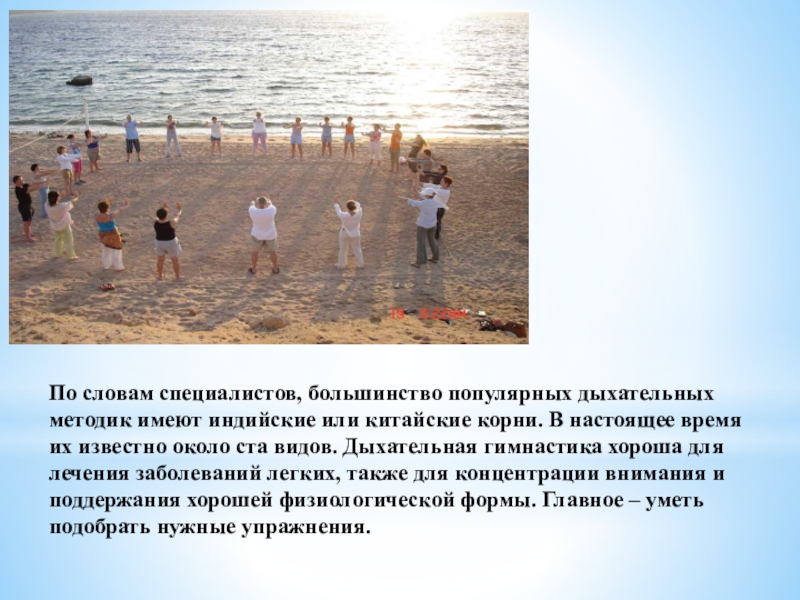 Слайд 3По словам специалистов, большинство популярных дыхательных методик имеют индийские или китайские
