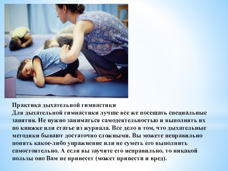 Для дыхательной гимнастики лучше все же посещать специальные занятия.
