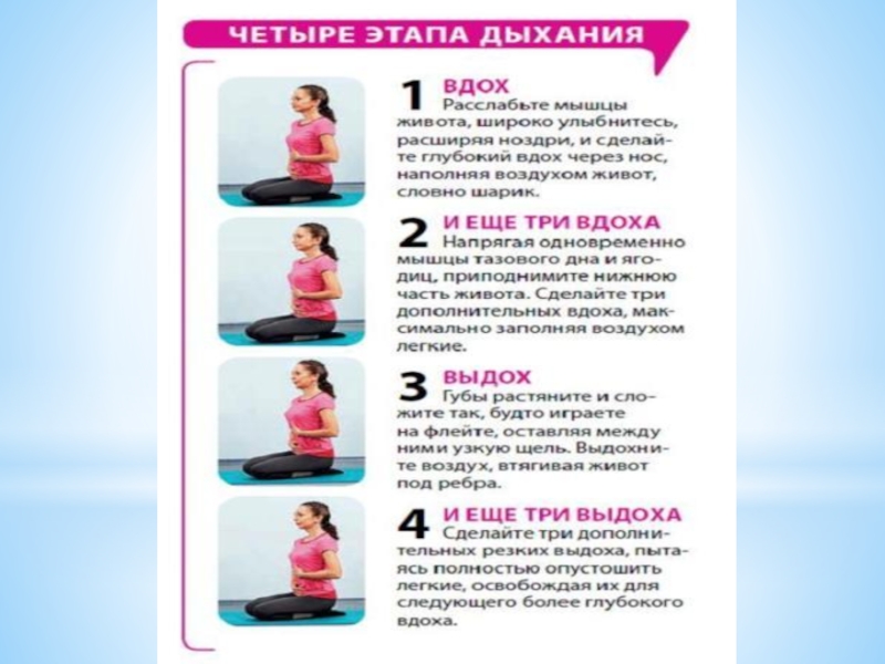 Слайд 10Практика дыхательной гимнастики