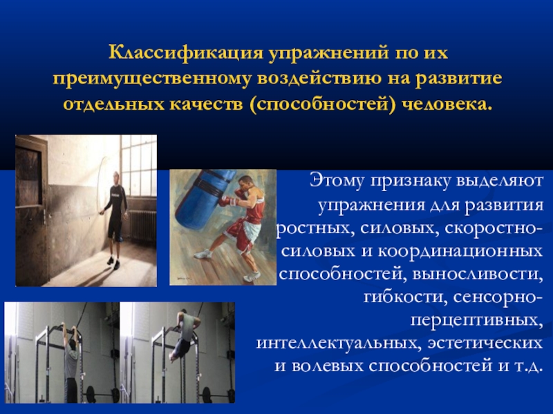 Классификация упражнений по их преимущественному воздействию на развитие отдельных качеств (способностей) человека