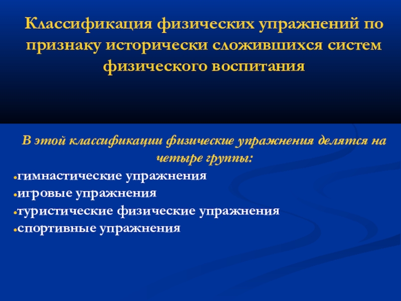 Классификация физических упражнений по признаку исторически сложившихся систем