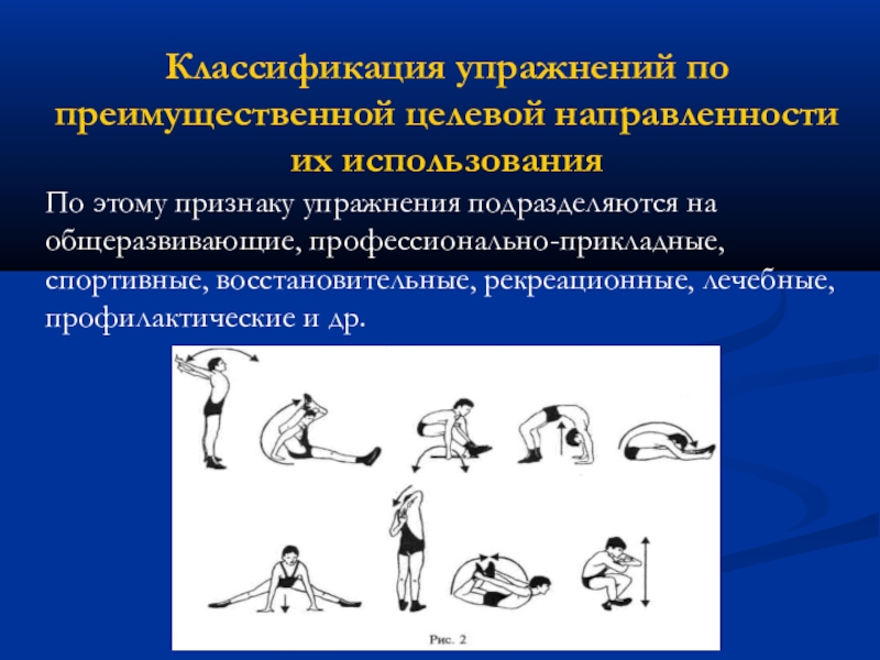 Классификация упражнений по преимущественной целевой направленности их использования.