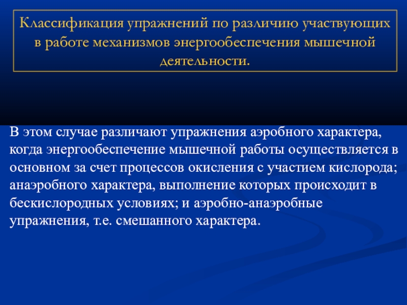 Классификация упражнений по различию участвующих в работе механизмов энергообеспечения мышечной деятельности
