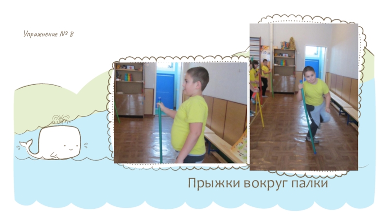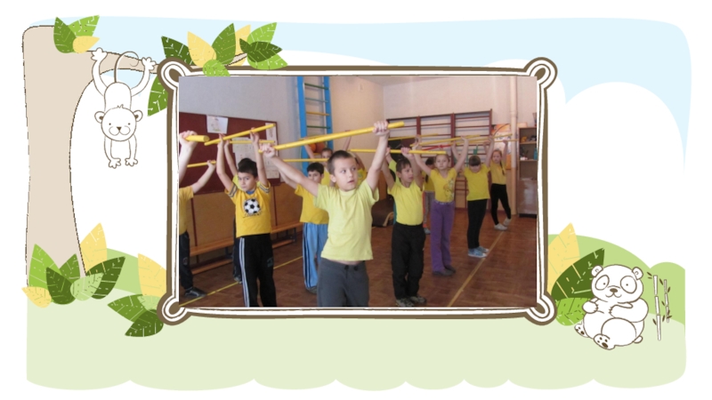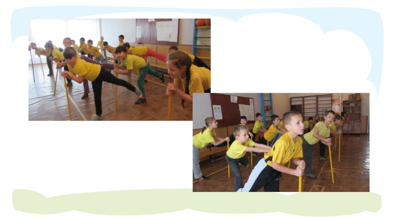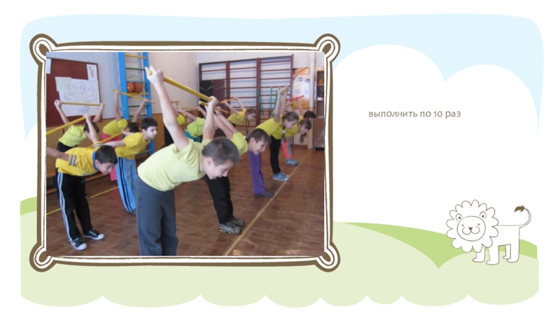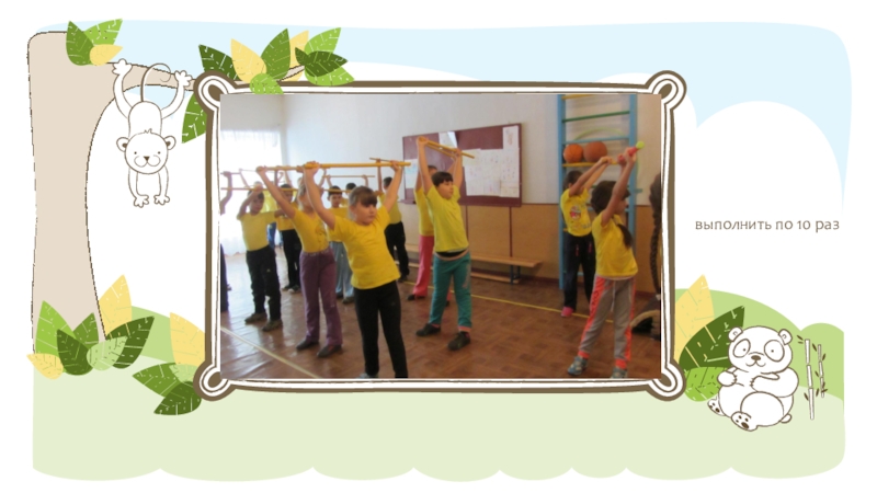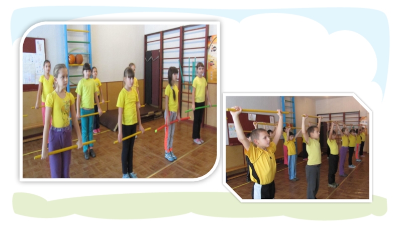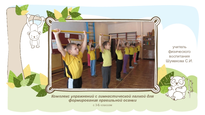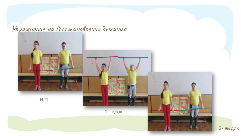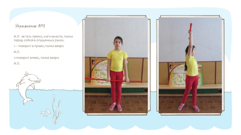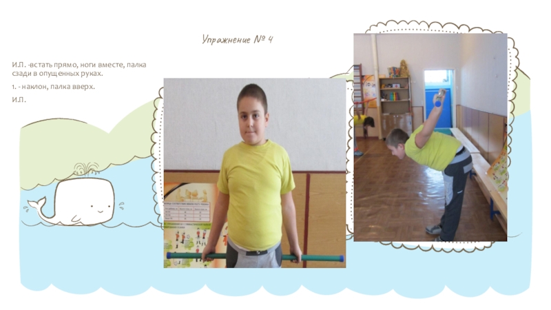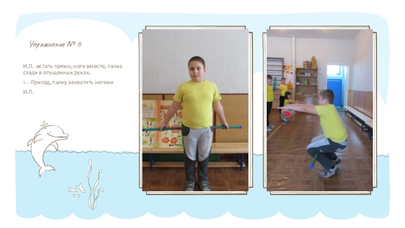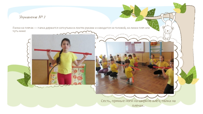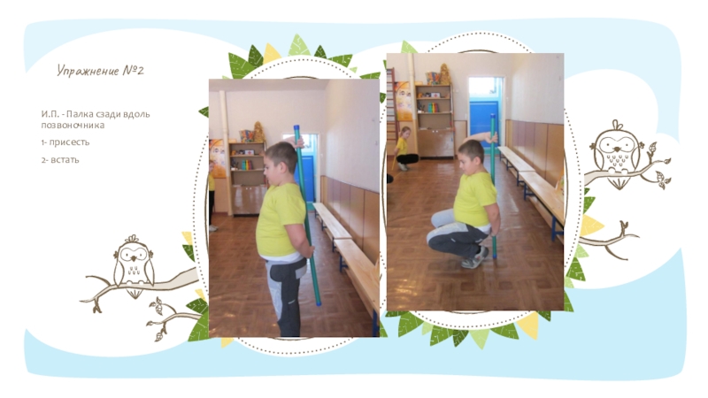 Сесть, прямые ноги на ширине плеч, палка на плечах.
