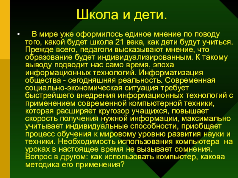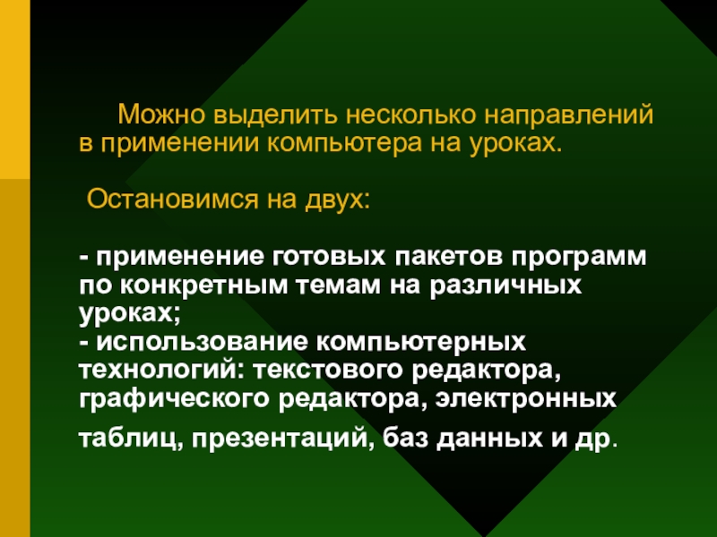. Не надо на уроке подстраиваться под готовое программное обеспечение, достаточно компьютер использовать как инструмент в своей методике.