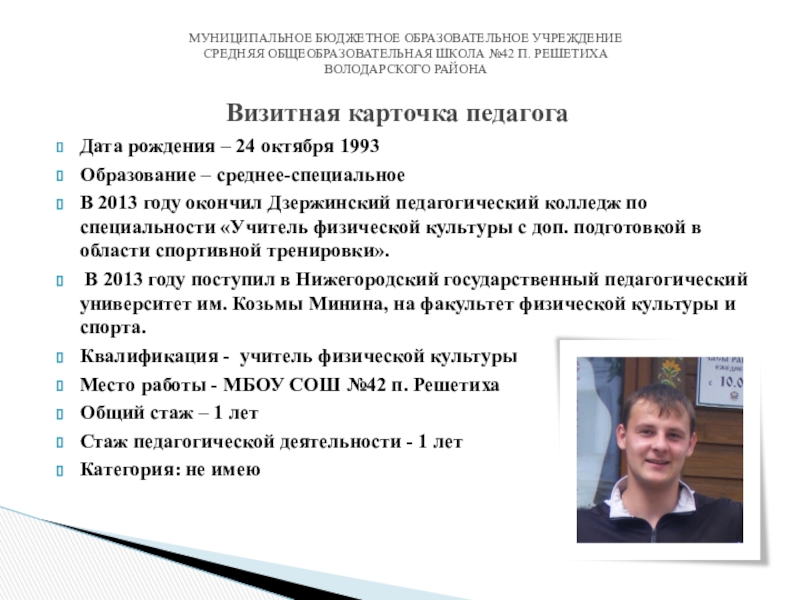Визитная карточка педагога