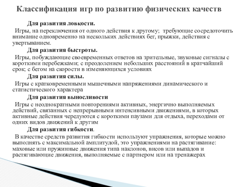 Классификация игр по развитию физических качеств