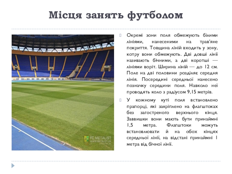 Окремі зони поля обмежують білими лініями, нанесеними на трав'яне