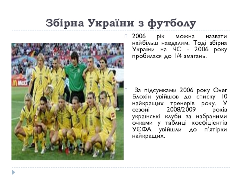 України на ЧС - 2006 року пробилася до 1/4 змагань.